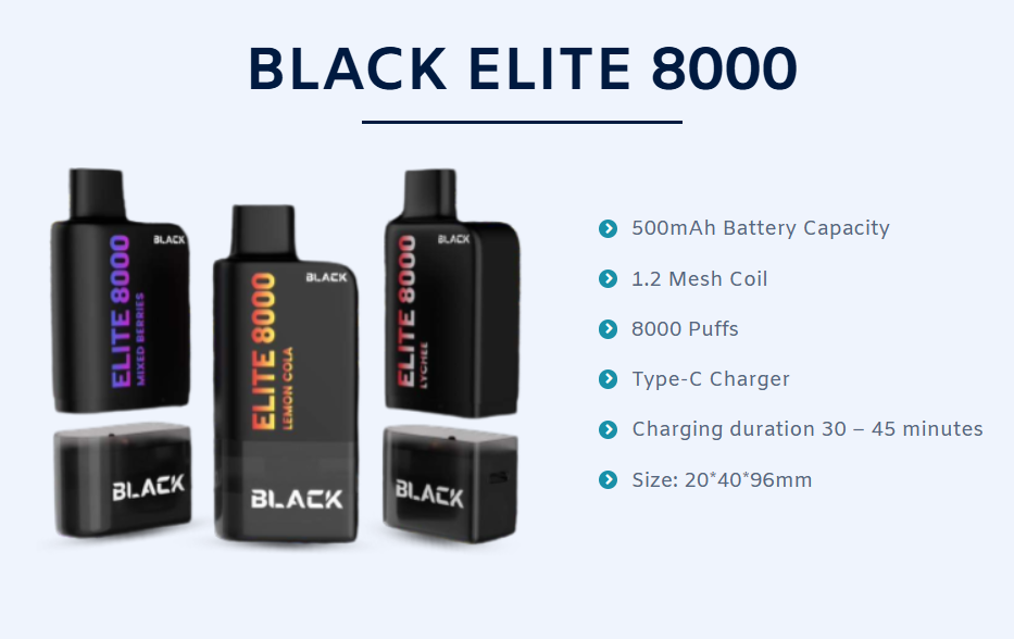 随着电子烟市场的日趋成熟,消费者对设备性能和便捷性的需求不断增长。Black Elite 8000凭借其强大的功能、高品质的设计和超长的使用寿命,已成为众多用户的理想之选。同时,与同类产品UV8000相比,两者在诸多方面有着高度相似的设计理念。下文将逐一介绍Black Elite 8000的核心特性,并与UV8000进行对比分析。